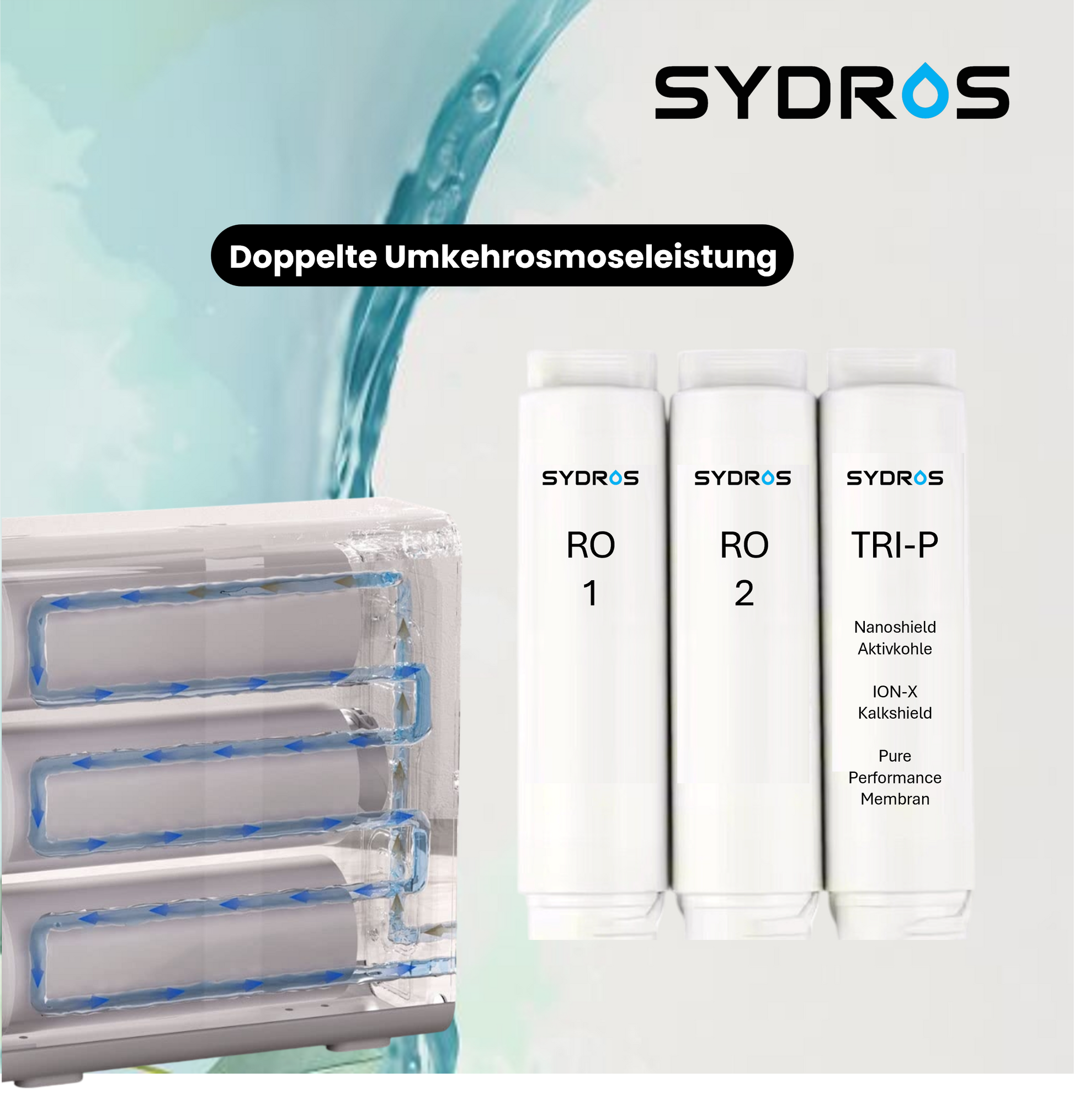 The SYDROS RO 800 is a modern, high-performance water filter system for homes and offices with high demands on water quality, comfort, and hygiene.
